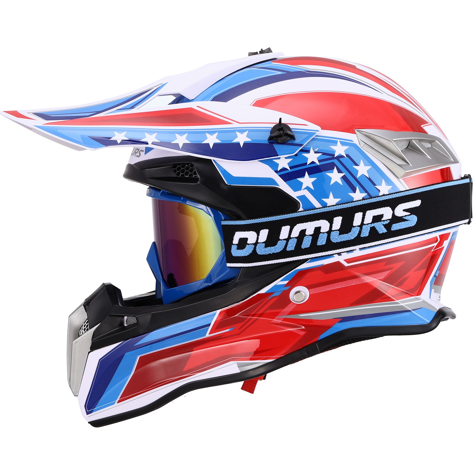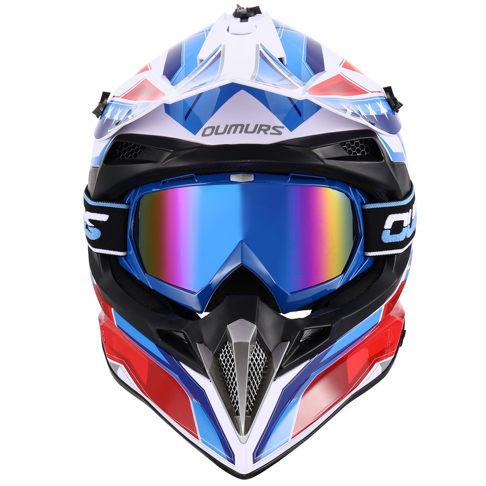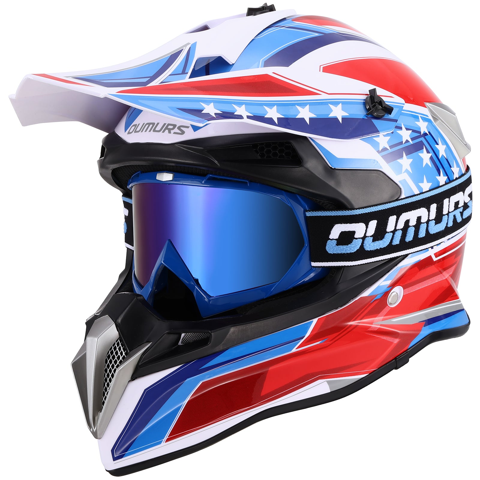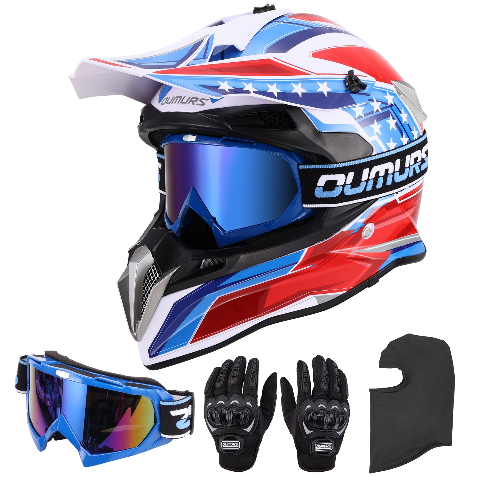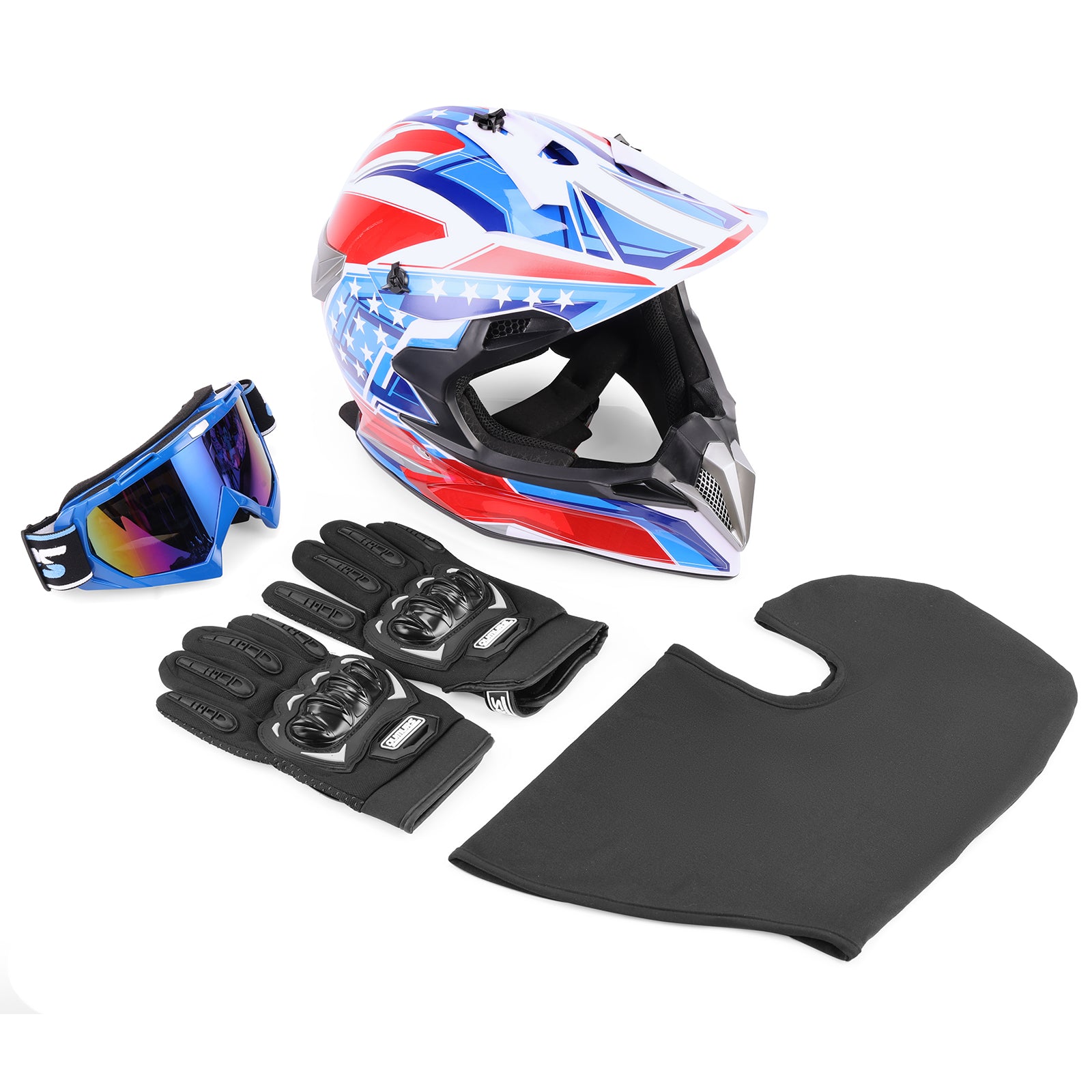 DOT Adult Dirt Bike Helmet with Goggles Gloves & Mask Adjustable Sun Visor Motorcycle Adult ATV Helmet Off-Road Motocross Downhill Moped MX BMX for Unisex Adult-188-Blue Star, L