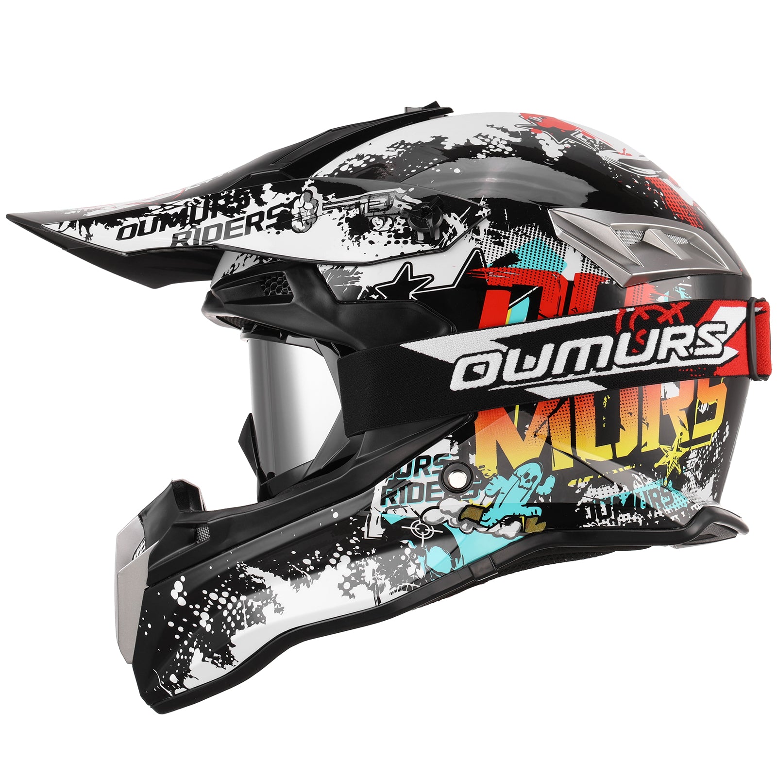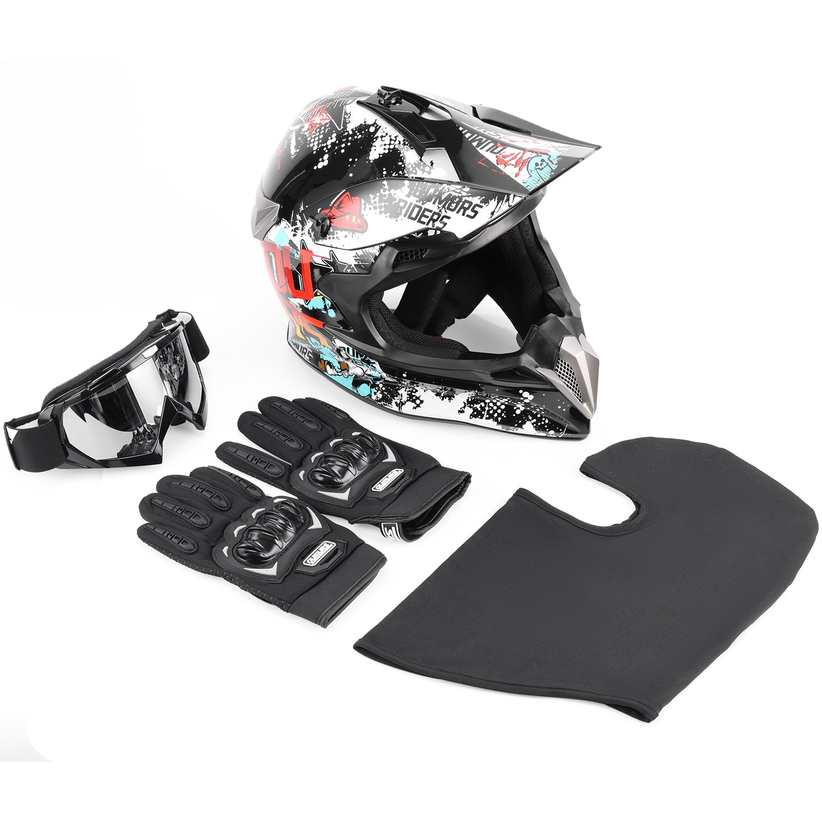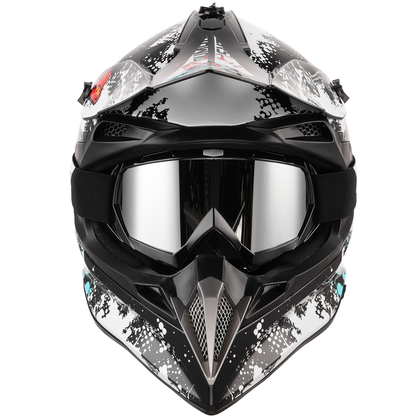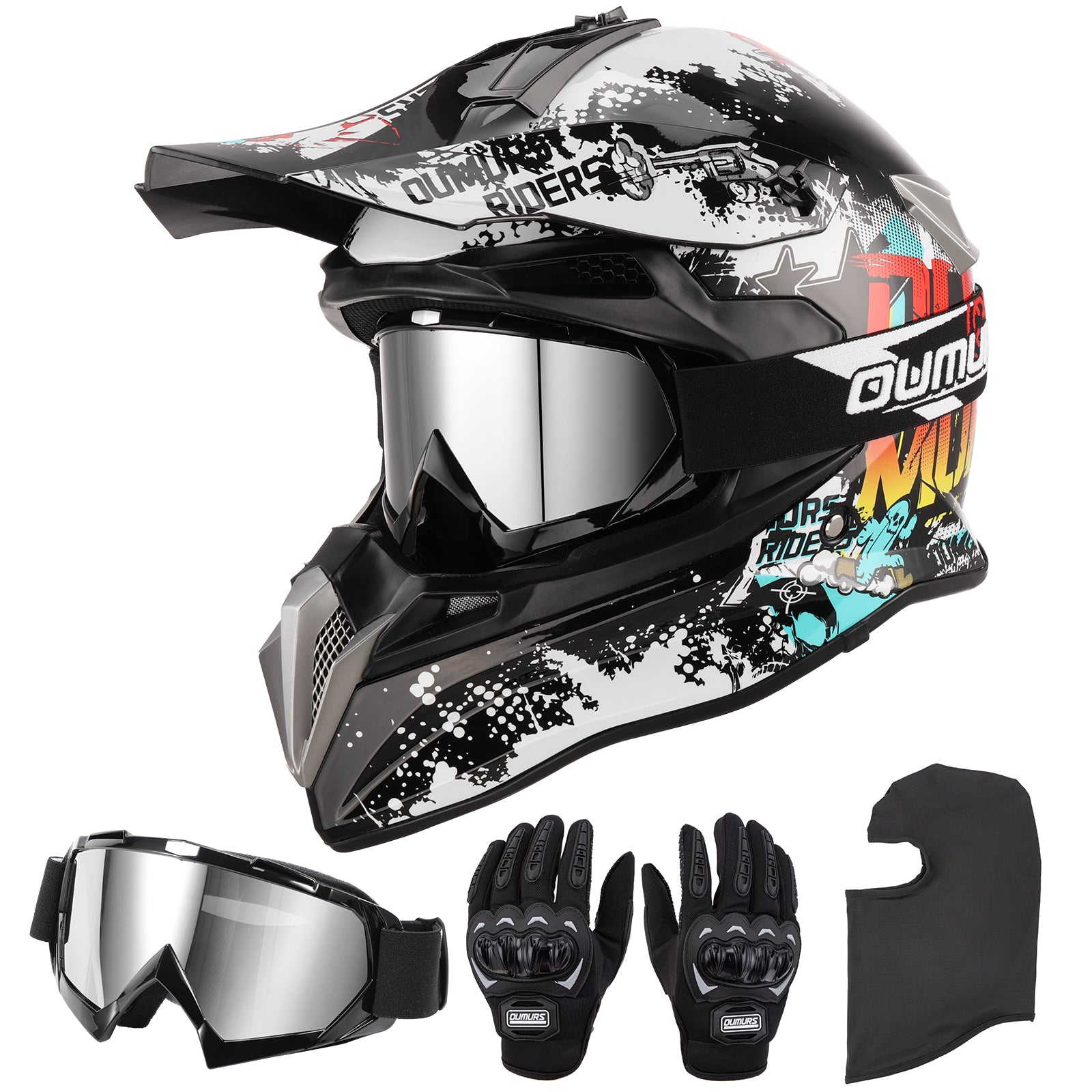 DOT Adult Dirt Bike Helmet with Goggles Gloves & Mask Adjustable Sun Visor Motorcycle Adult ATV Helmet Off-Road Motocross Downhill Moped MX BMX for Unisex Adult-188-White Cowboy, L