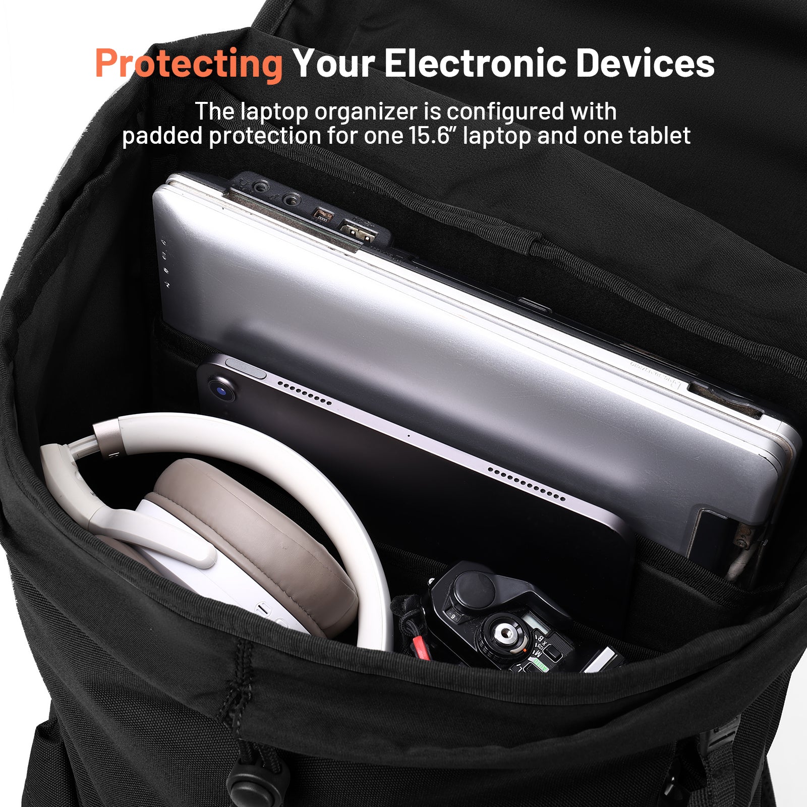 - Compact Yet Spacious - This backpack is compactly structured, perfect for daily commuting or campus use. It features dual compartments that can accommodate a tablet and a laptop up to 15.6 inches, with a 22L capacity that meets your daily commuting and leisure exploration needs