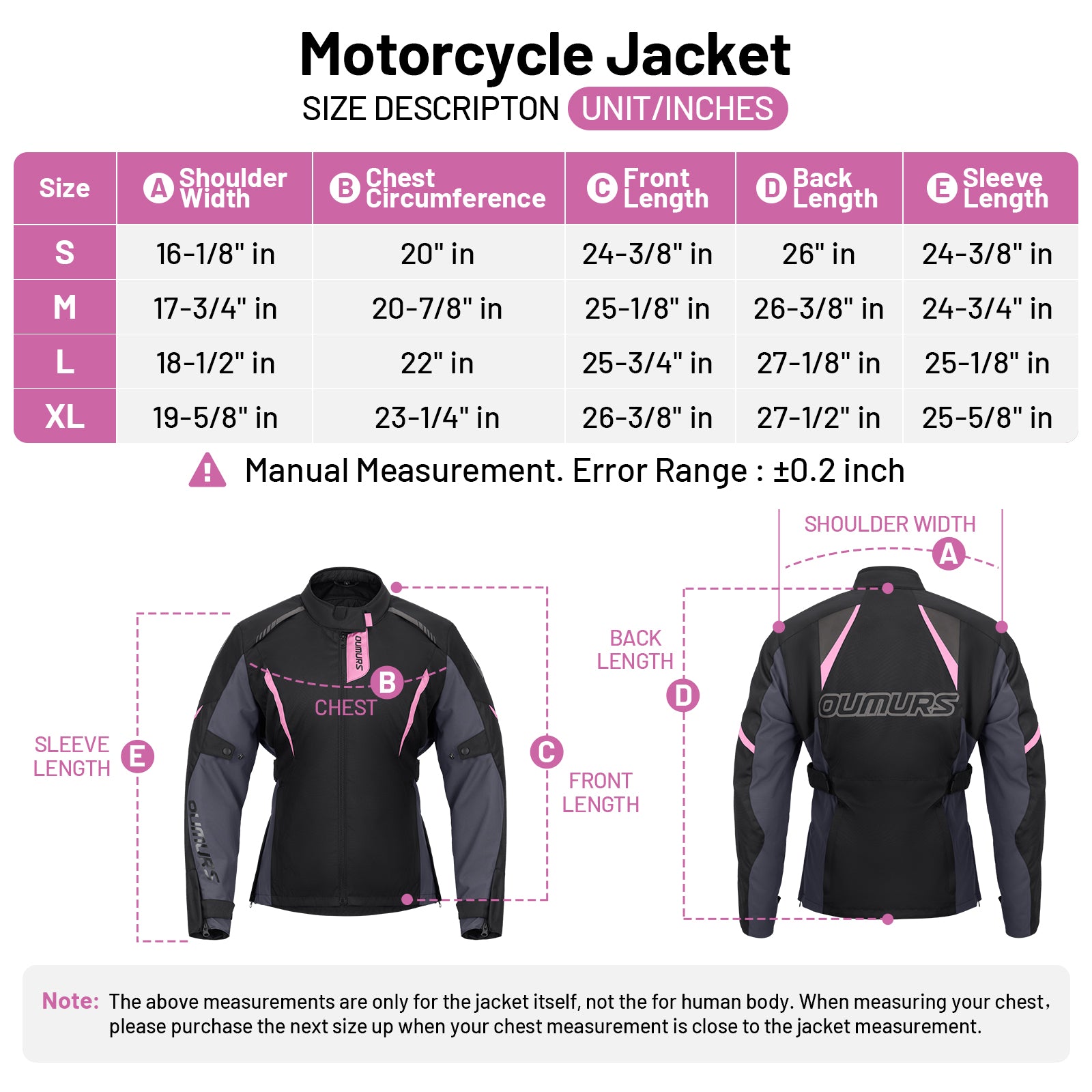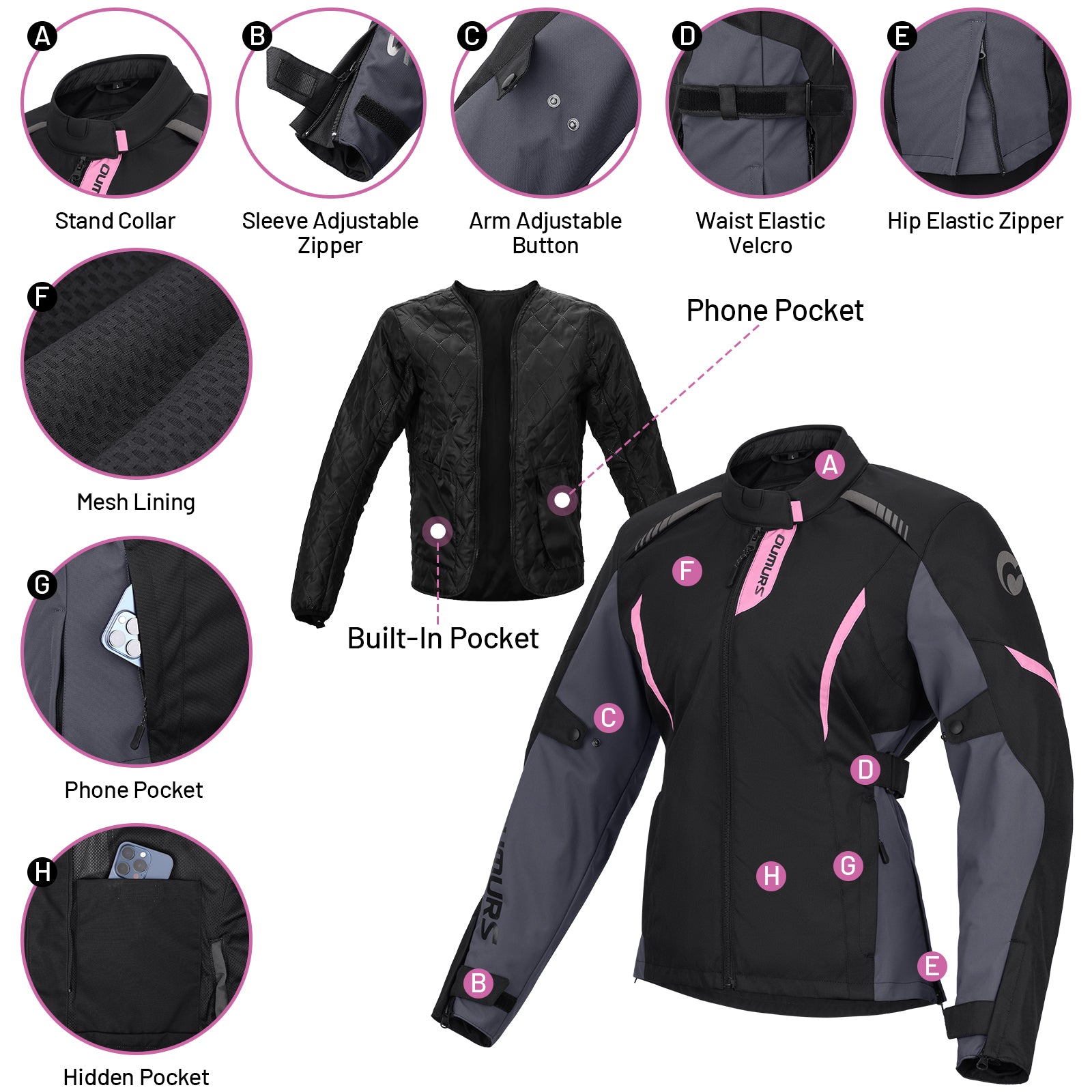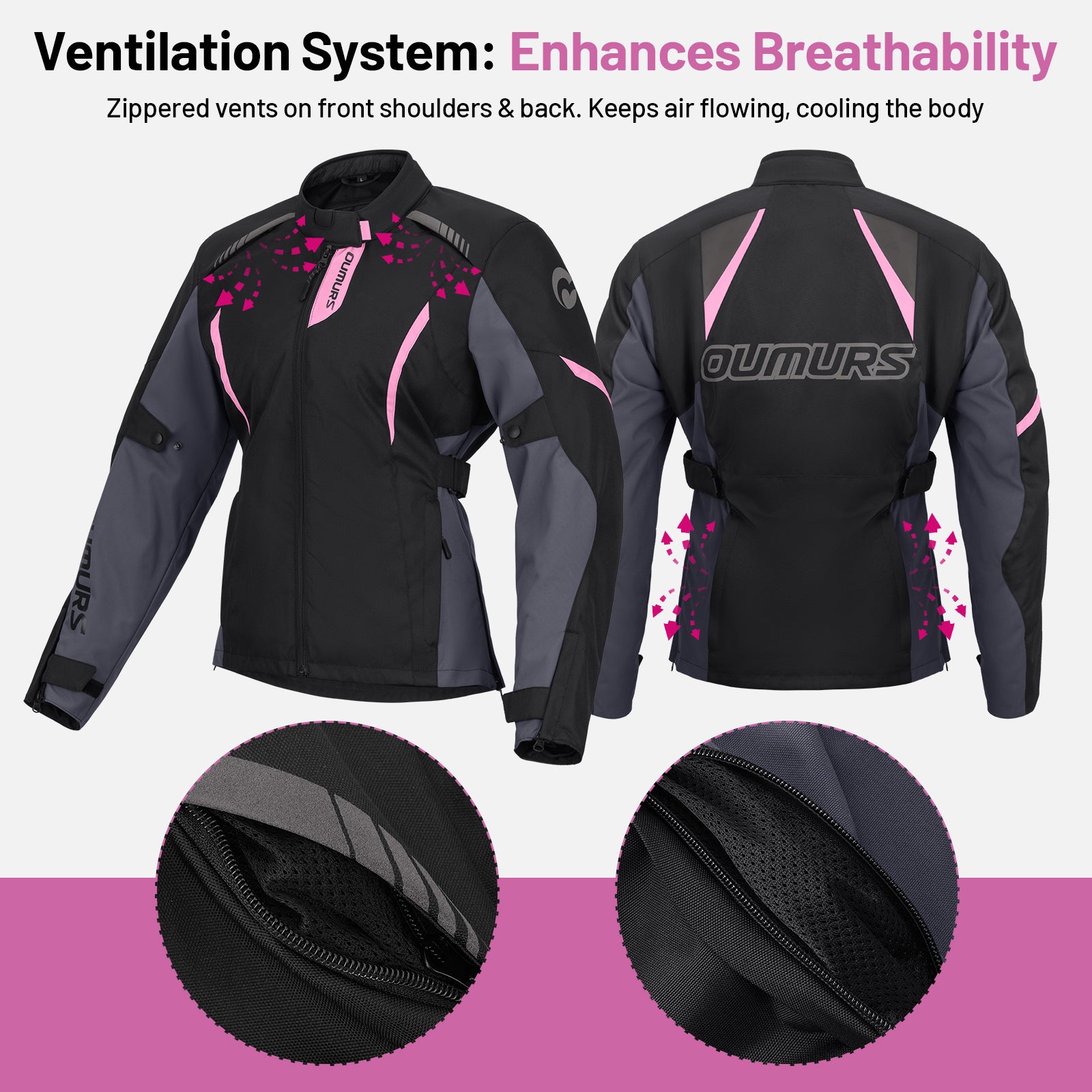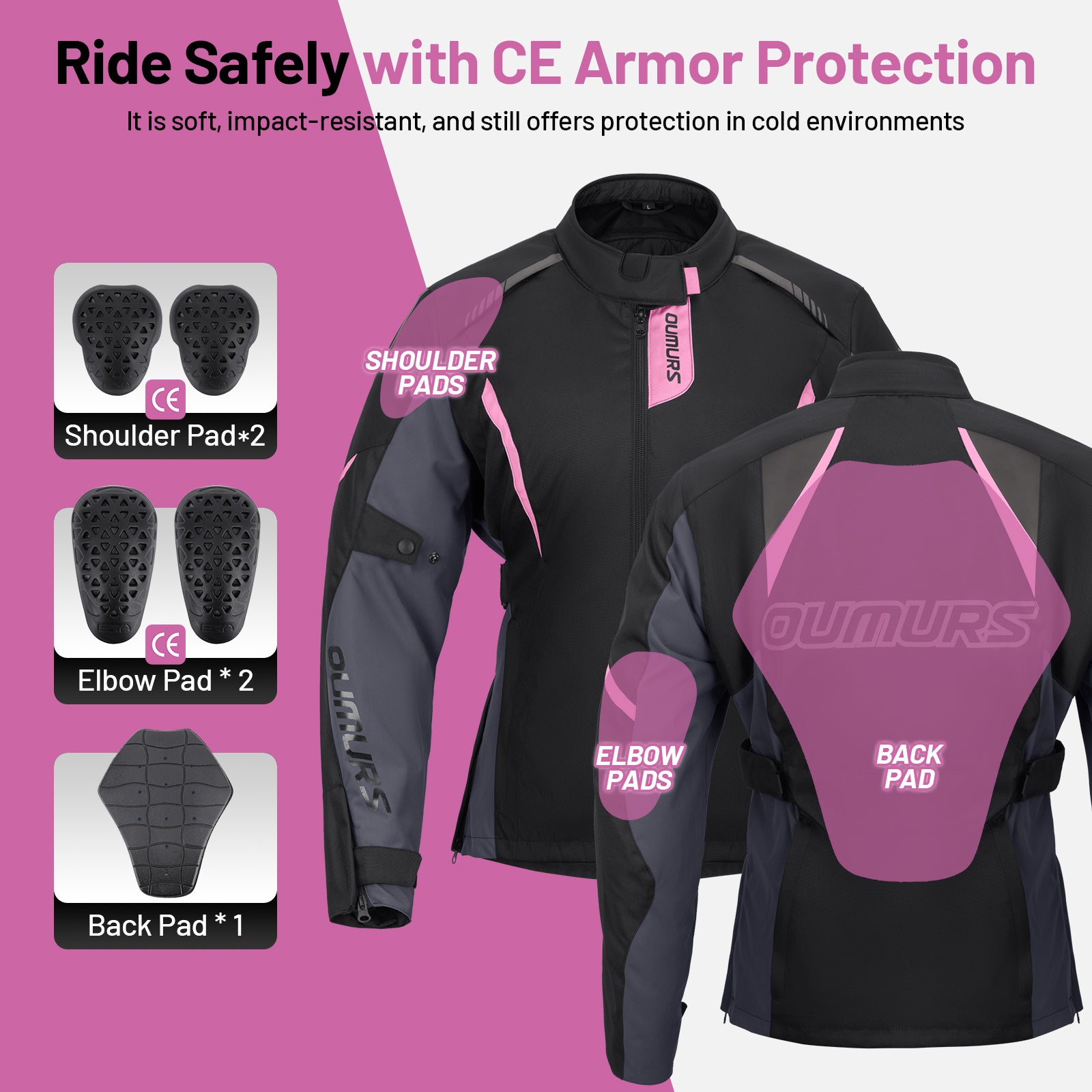 Motorcycle Jacket for Women With CE Armor and Waterproof Riding Gear with Body Armor Foam Padding & Breathable Fabric