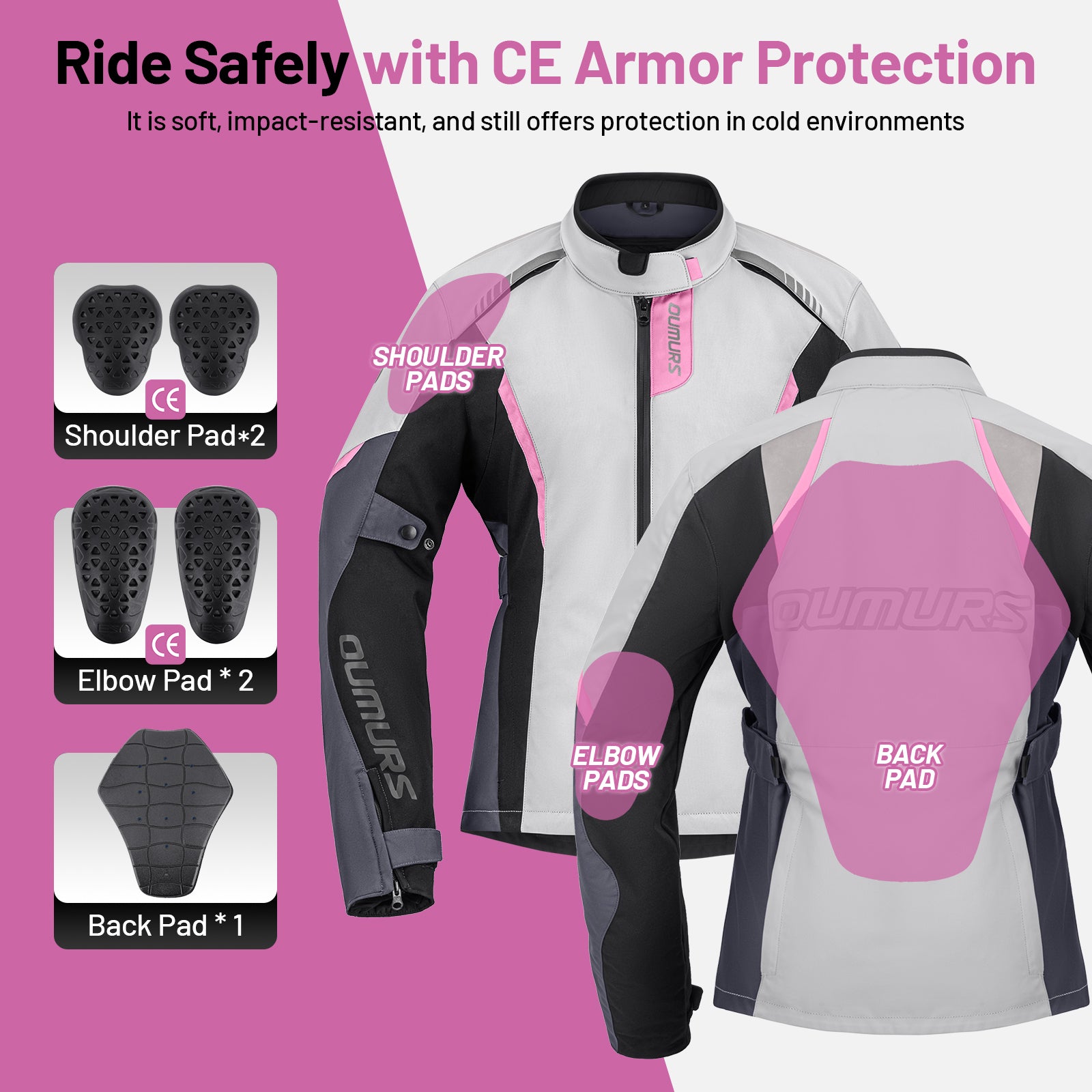 Motorcycle Jacket for Women With CE Armor and Waterproof Riding Gear with Body Armor Foam Padding & Breathable Fabric