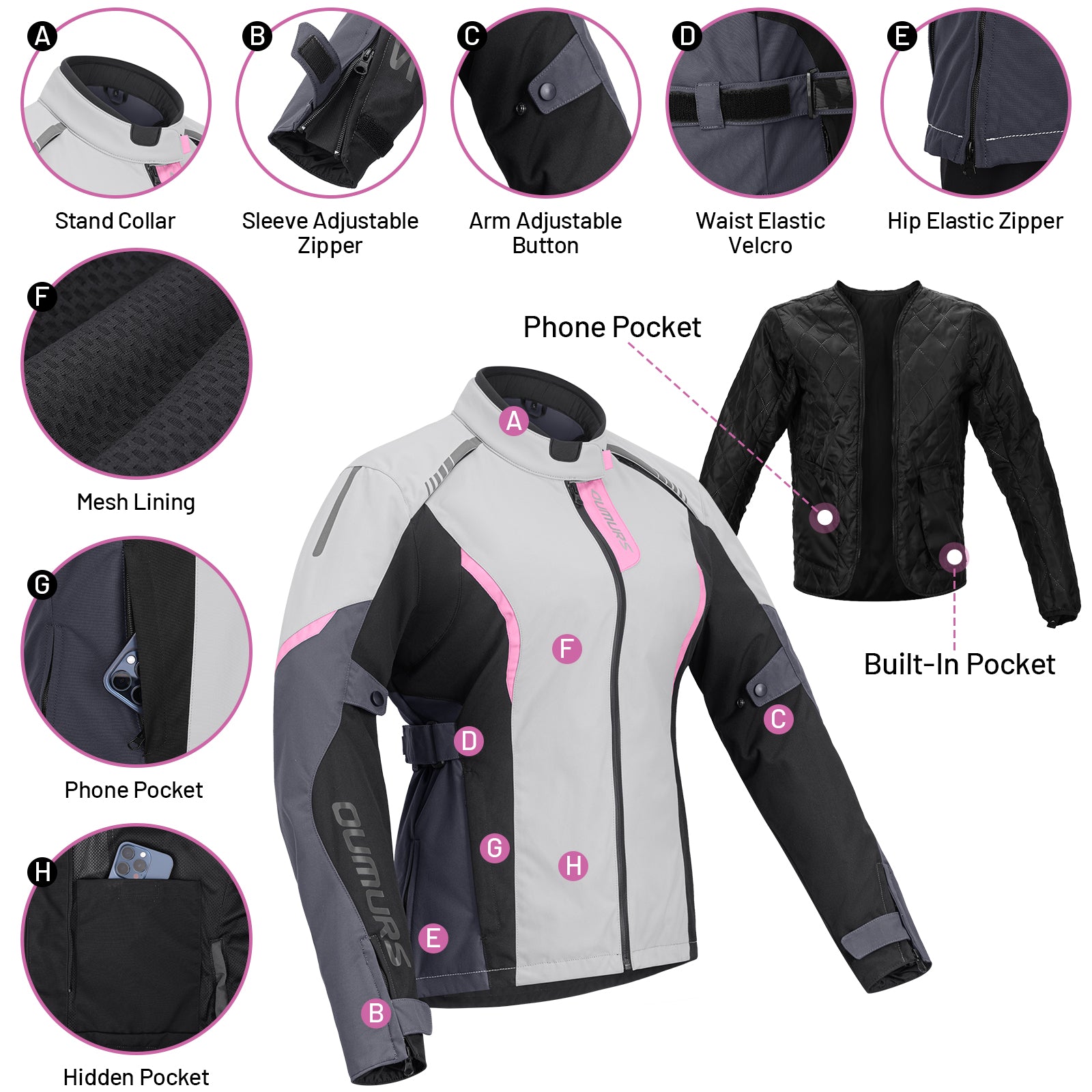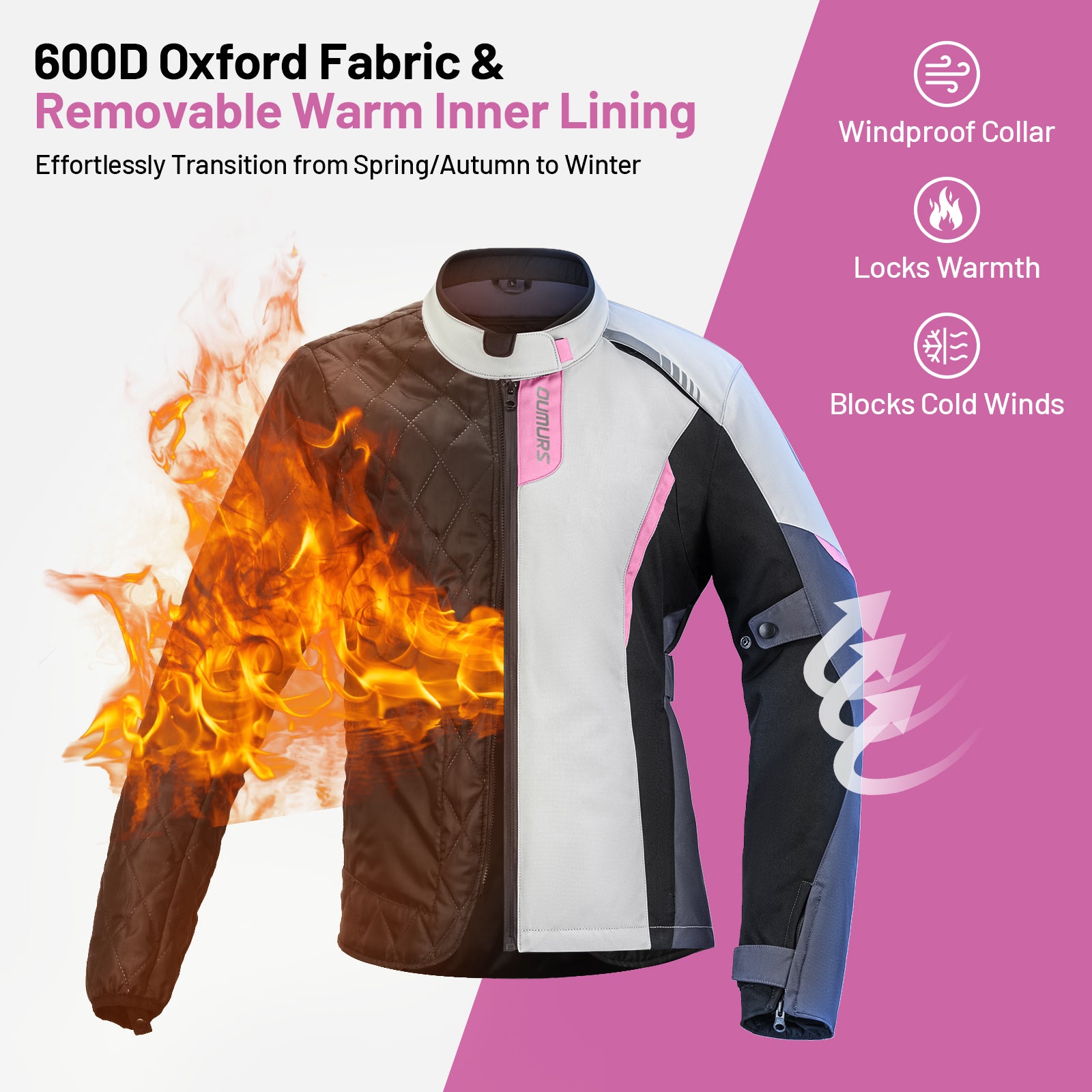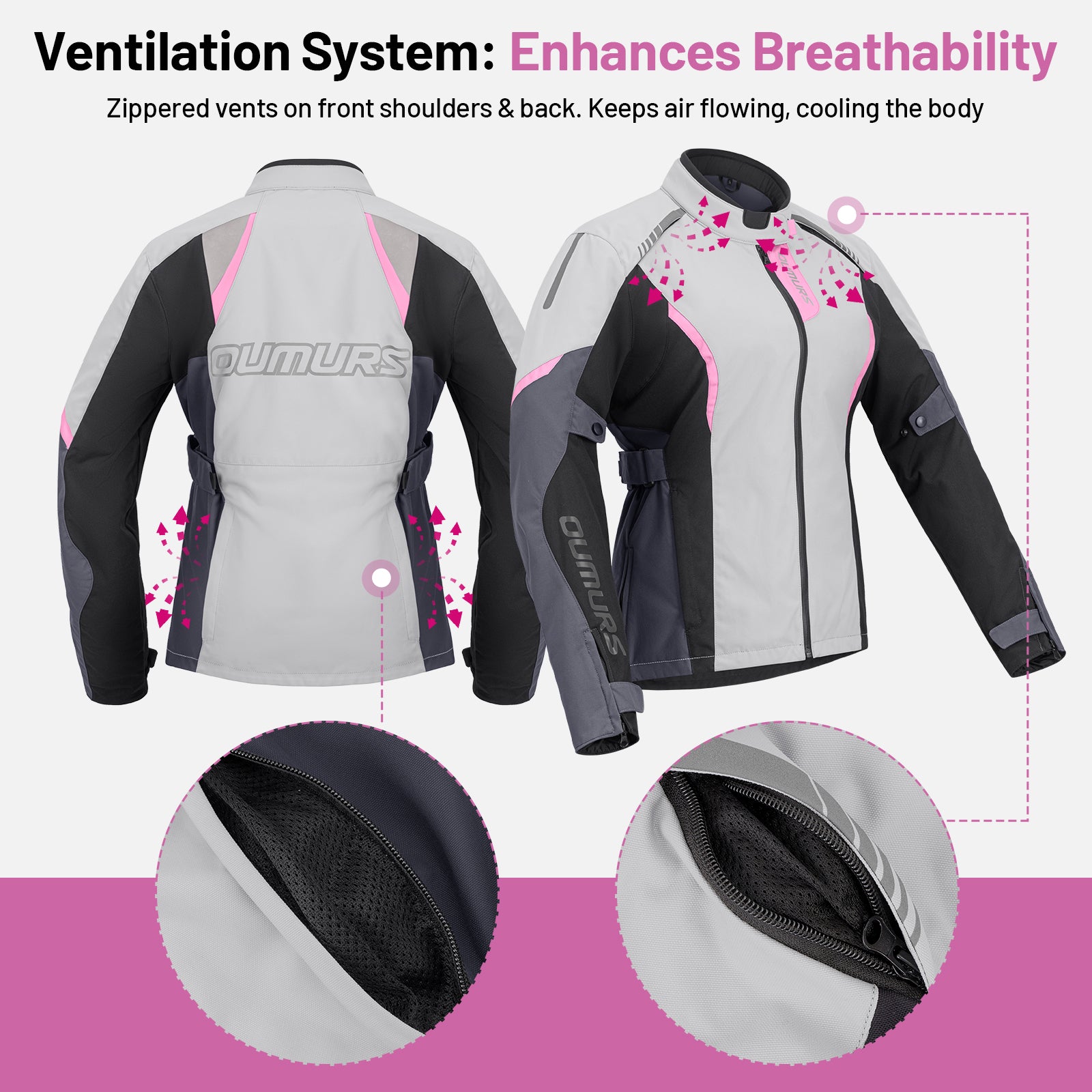 Motorcycle Jacket for Women With CE Armor and Waterproof Riding Gear with Body Armor Foam Padding & Breathable Fabric