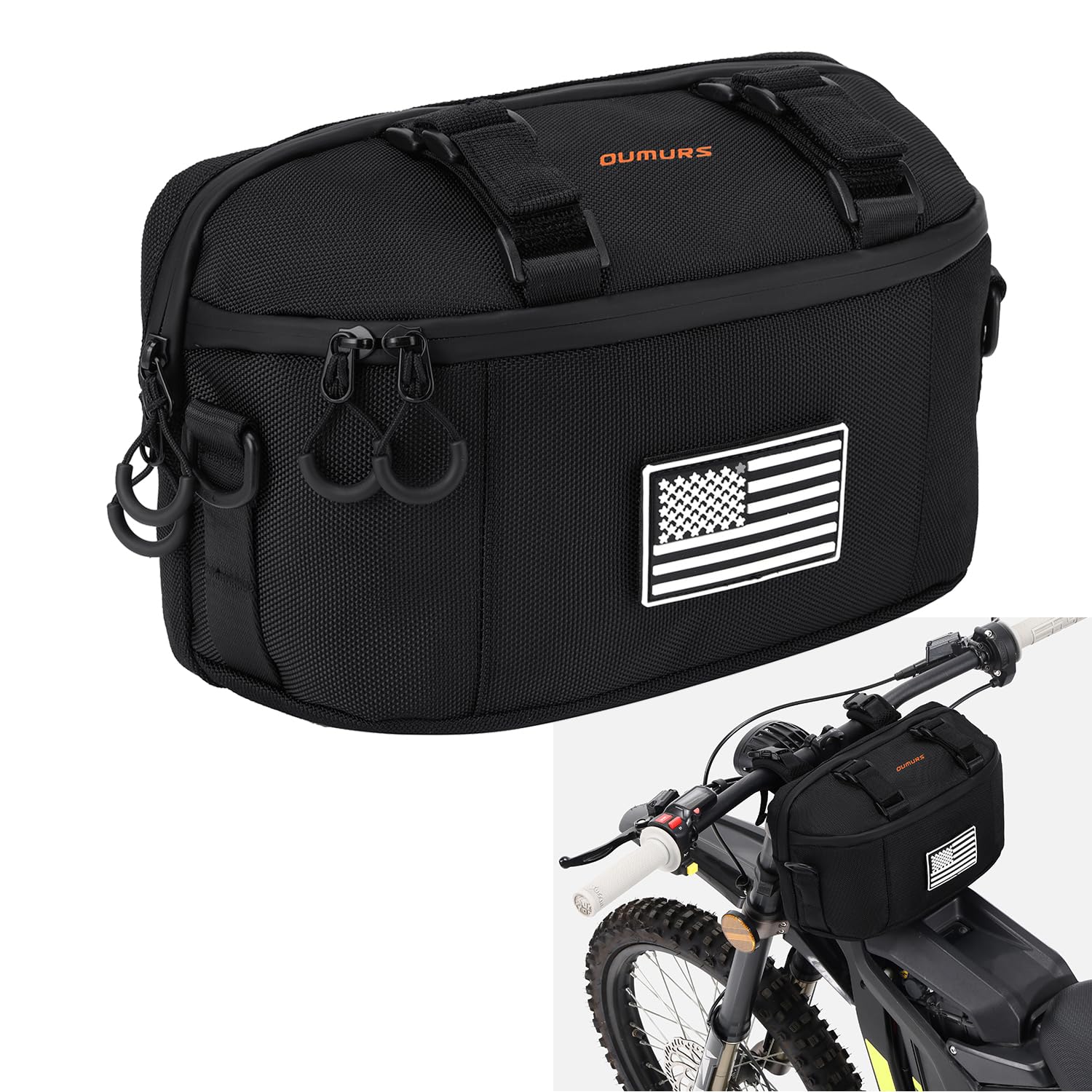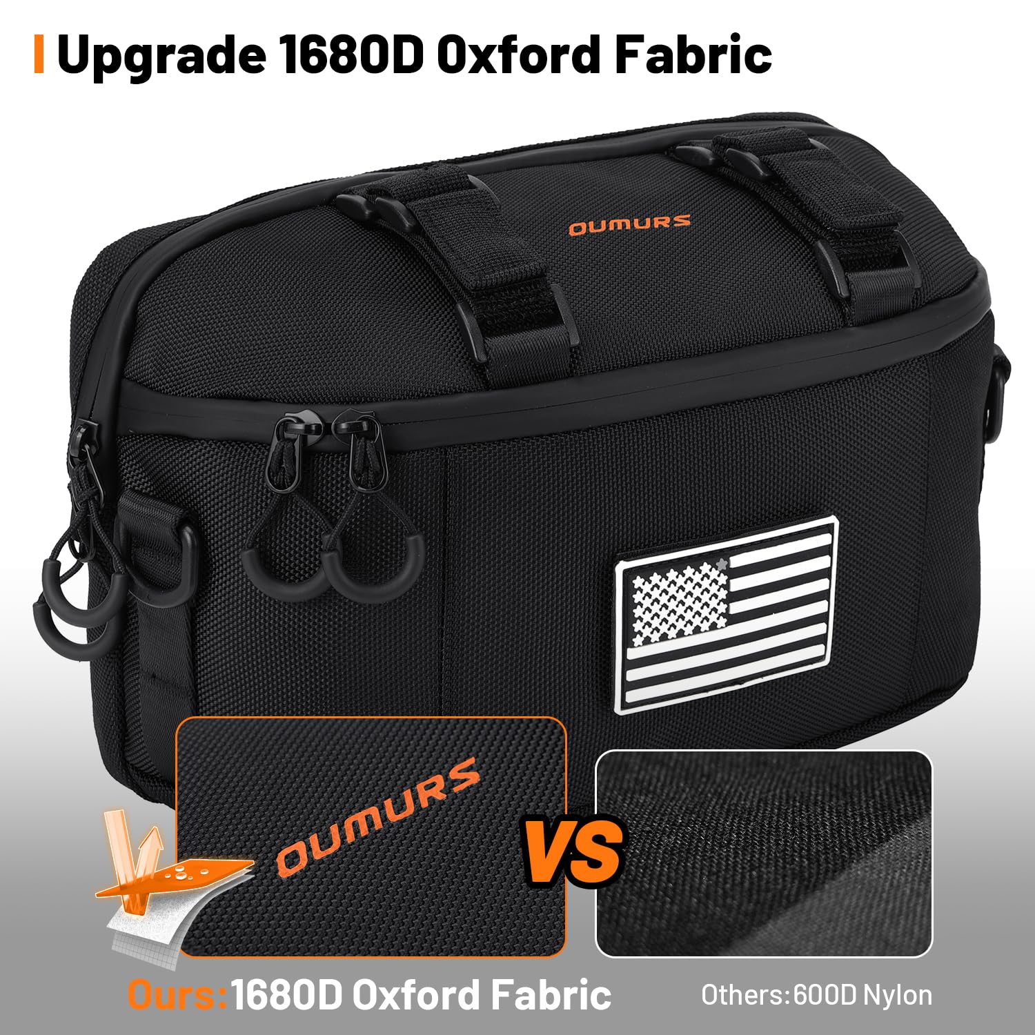 Oumurs Motorcycle Handlebar Bag,1680D Water-resistant Universal Bar bag American Flag Sissy Bar Bag