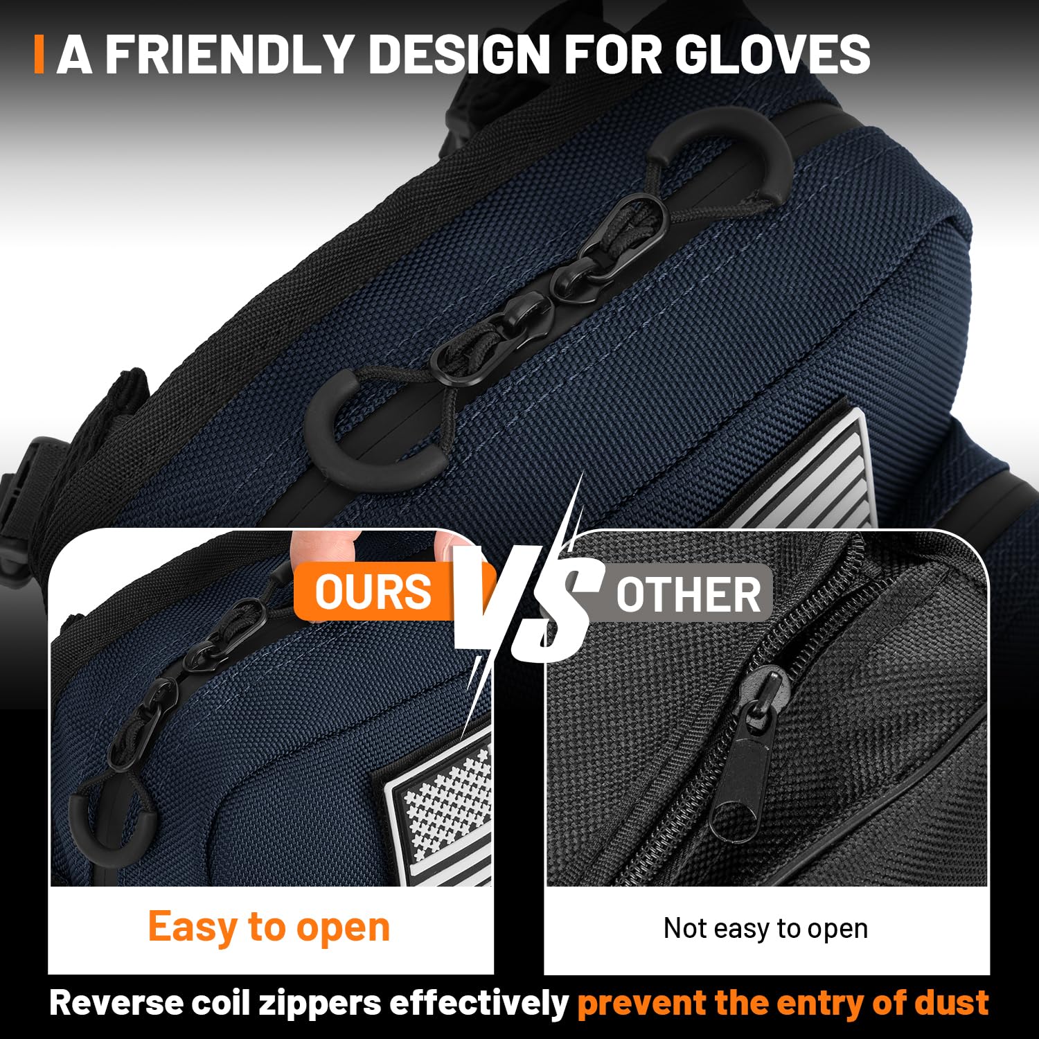 5, large size, the size is larger than other products on the market, you can easily store all small items, such as mobile phones, headphones, keys, wallets, gloves, keys, goggles, snacks, etc. Detachable American flag stickers give you a unique personality at all times.