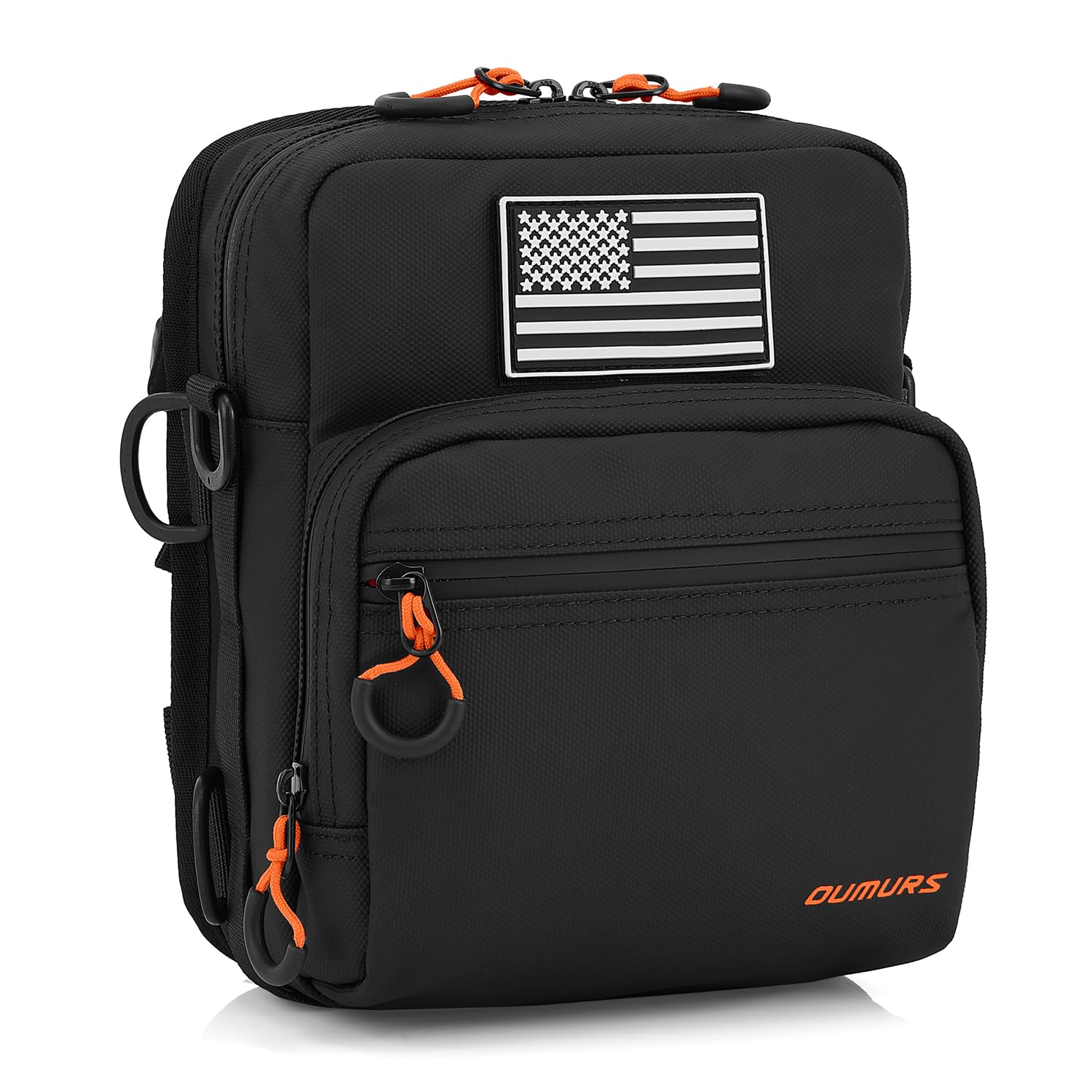 5, large size, the size is larger than other products on the market, you can easily store all small items, such as mobile phones, headphones, keys, wallets, gloves, keys, goggles, snacks, etc. Detachable American flag stickers give you a unique personality at all times.