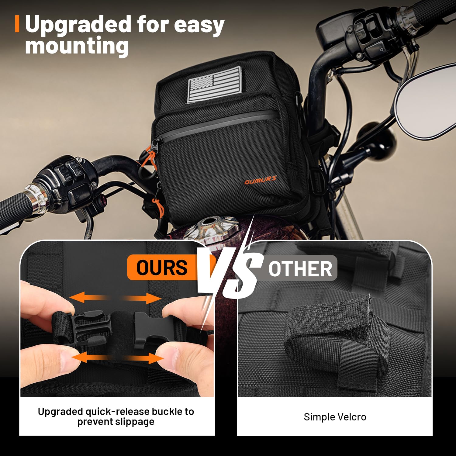 Oumurs Motorcycle Handlebar Bags,1800D Water-resistant Universal Bar bag American Flag Sissy Bar Bag